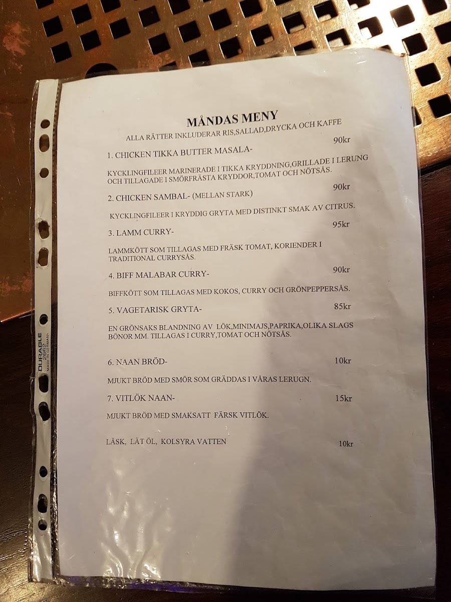 Introducing the Menu at Spice of India - 114 36 Stockholm